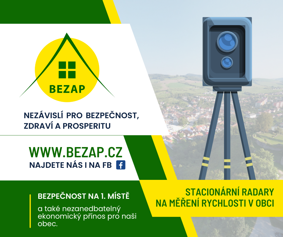 Bezpečnost na 1. místě! Nainstalujeme několik radarů na měření rychlosti na území našeho města. Výtěžek bude použit pro dobrou věc. Přijďte prosím k volbám.