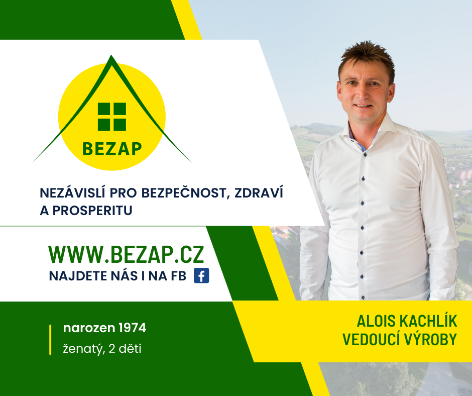 Jmenuji se Alois Kachlík 48 let. Jsem ženatý a mám dvě dcery. Jsem vyučený strojní mechanik KPS Brno. Od mládí se věnuji sportu. Fotbal jsem aktivně hrál do 45 let a následně jsem začal trénovat. Nyní jsem trenérem starších žáků FC Brumov. Ve volném čase se věnuji rodině (cestování,sport kolo,lyže,turistika).